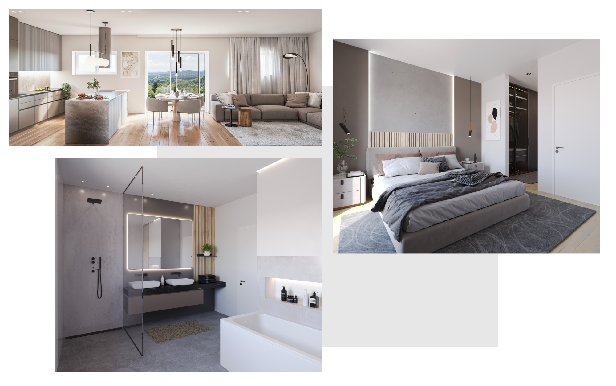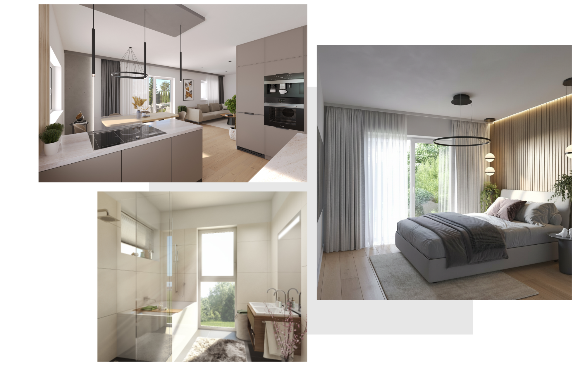 Großzügige Grünflächen, private Gärten und durchdachte Außenbereiche sorgen für ein entspanntes Wohngefühl – drinnen wie draußen.